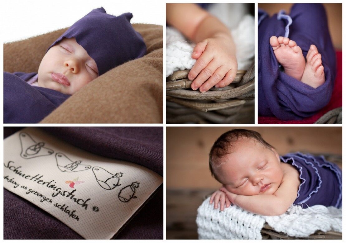 Deshalb ist es sehr sinnvoll, das Baby eng in seine Wolldecke zu wickeln, damit es genügend warm ist, sich permanent spüren und Arme und Beine bei sich behalten kann. Das gibt dem Baby sehr viel Halt und Geborgenheit. Es ist oft zu beobachten, das unruhige Babys wie verwandelt sind, wenn sie diese wohltuende Enge und Wärme um sich herum wahrnehmen. Da Eltern die Technik des Wickelns traditionsbedingt nicht mehr beherrschen, müssen sie eventuell einmal zu Hilfsmitteln greifen und einen Seidenschal o.ä. im Schulterbereich um das "Päckchen" wickeln, damit das Baby mit seinen rudernden Bewegungen die Decke nicht wieder öffnet. Lassen Sie sich von Ihrer Hebamme zeigen, wie Sie Ihr Baby sicher und kuschelig pucken können. Scheuen Sie sich nicht, Ihrem Baby die Welt wirklich eng zu gestalten. Entgegen der herkömmlichen Literaturaussage ist es keine Freude für ein Neu geborenes, frei zu strampeln. Im Gegenteil, es bekommt Angst, weil es die Welt in ihrer Größe nicht einschätzen kann und sich darin verliert. Denken Sie an die Geborgenheit im Mutterleib, auch dort war es eng und kontinuierlich warm. Viele Völker wickeln ihre Babys monatelang so eng, dort sind - natürlich auch aus anderen Gründen - unruhige Babys nicht bekannt. Wir sollten es zu mindestens einige Wochen so durchführen, bis das Baby seine Gliedmaßen gezielt bewegen kann und nicht mehr vor der Weite und seiner eigenen unkoordinierten Bewegung erschrecken muss.